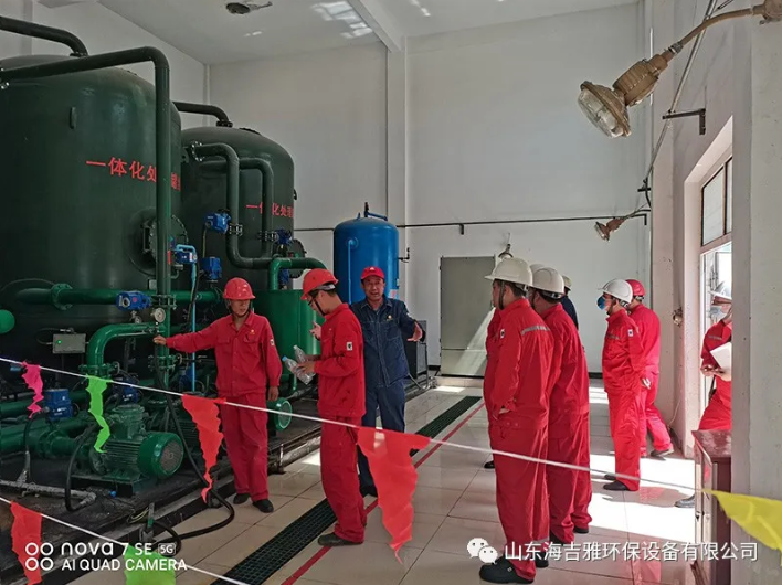 在作业区袁经理进行陪同下,考察组对公司一体化水处理设备进行详细了解,并仔细将来水和出水进行对比,细致询问公司产品和工艺流程。
