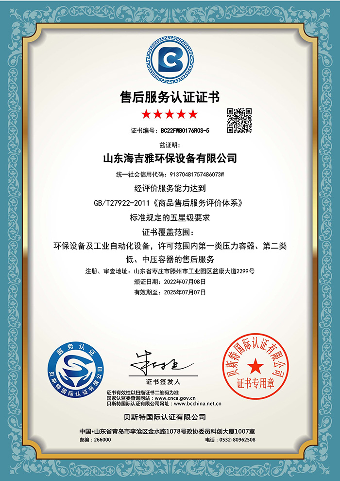环境管理体系认证证书