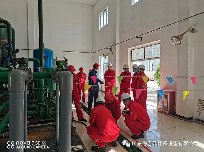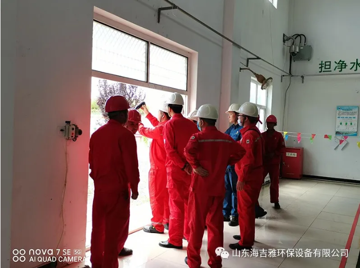 在作业区袁经理进行陪同下,考察组对公司一体化水处理设备进行详细了解,并仔细将来水和出水进行对比,细致询问公司产品和工艺流程。
